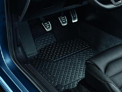 Twój Volkswagen Golf potrzebuje nowych dywaników? Postaw na oryginalny produkt! Oferowane przez nas dywaniki gumowe Volkswagen Premium Golf cechuje wysoka jakość wykonania, która przekłada się na trwałość produktu. Dywaniki samochodowe gumowe przednie posiadają odpowiednie do systemu mocowania VW Golf 7 i Golf 7 GP, dzięki czemu nie przesuwają się podczas jazdy i zawsze zostają na swoim miejscu. Możesz ich używać niezależnie od pory roku, świetnie sprawdzą się zwłaszcza zimą. Trwałe dywaniki gumowe odporne są na działanie czynników atmosferycznych takich jak niska temperatura czy wilgoć. Są naprawdę łatwe w czyszczeniu, dzięki czemu szybko pozbędziesz się z auta piasku i wniesionego na butach błota. Komplet dywaników gumowych Premium Golf 7 i Golf 7 GP zawiera 4 sztuki - 2 dywaniki przednie i 2 tylne.